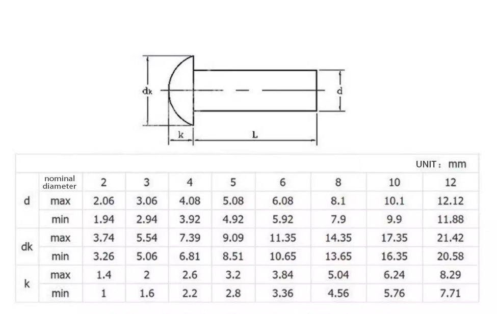 Os parafusos são esse rebite de cobre da cabeça meia redonda é o cobre eletrolítico. A combinação de material e artesanato de alta qualidade é perfeito para muitas aplicações de fixação.