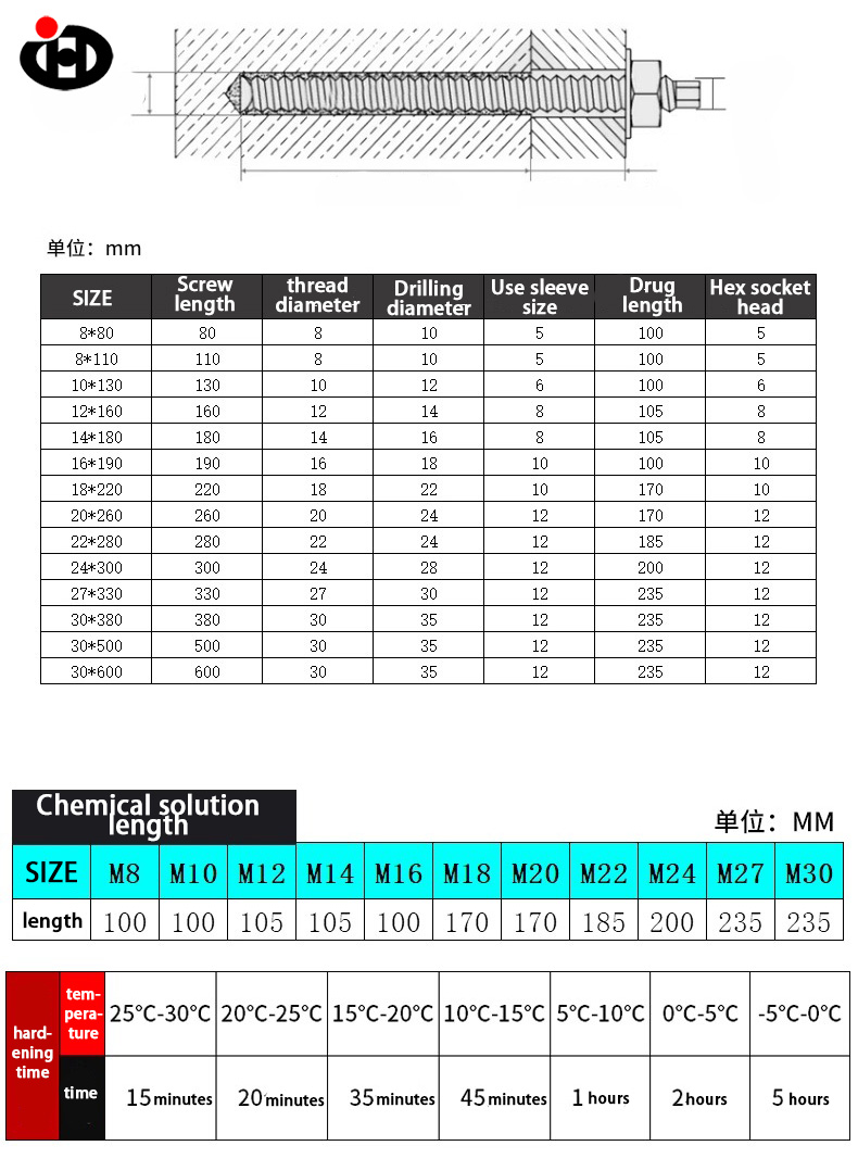 O parafuso de expansão química adota um projeto combinado de "parafuso de mangueira química+", que é fixado com uma pasta química especial para formar uma camada de ligação de alta resistência com o substrato, e a força de ancoragem é comparável à das partes incorporadas. É amplamente utilizado na construção da estrutura de aço, fixação do equipamento, instalação de parede de cortina e outras cenas com as características de super rolamento, resistência ao terremoto, resistência ao envelhecimento, instalação conveniente, etc.