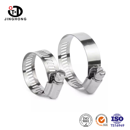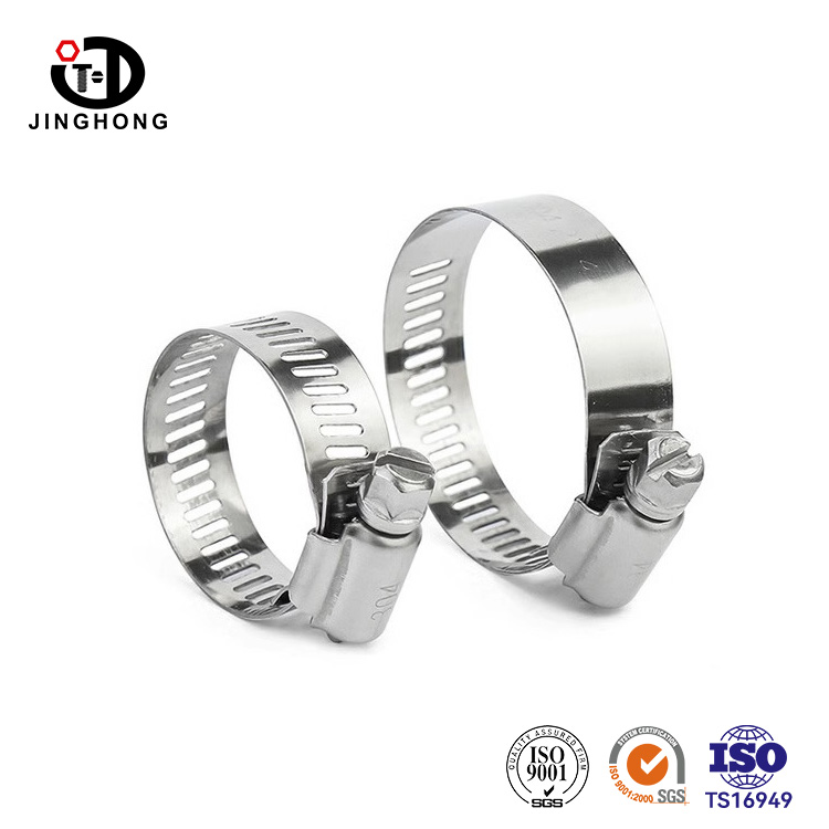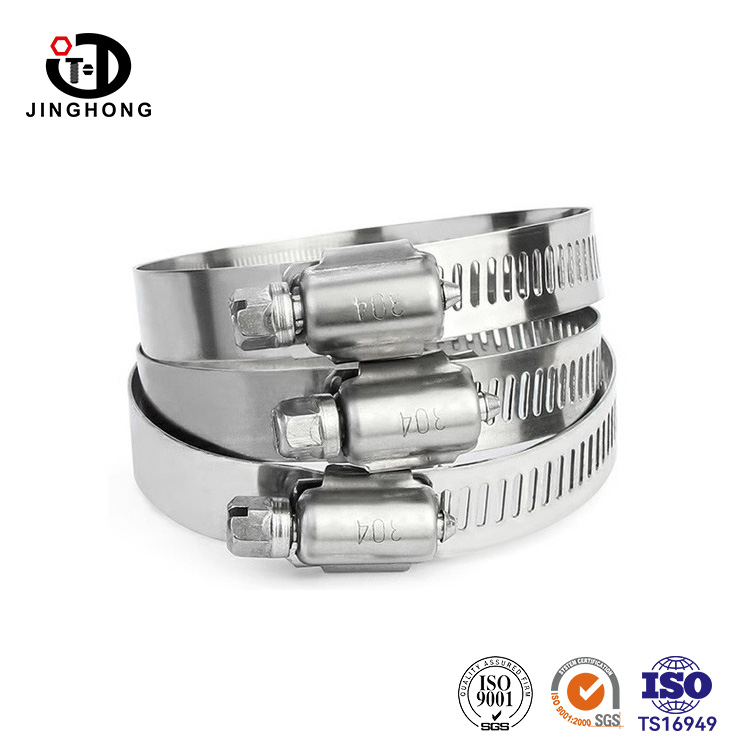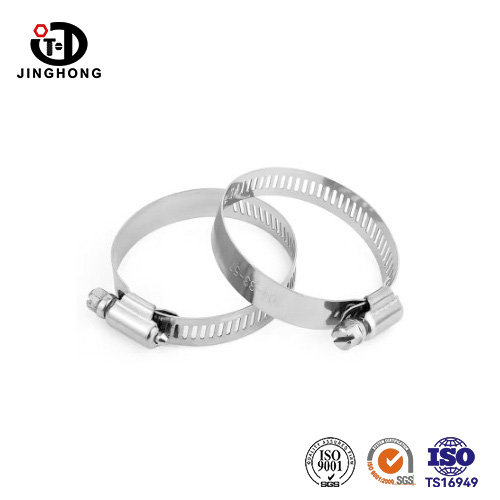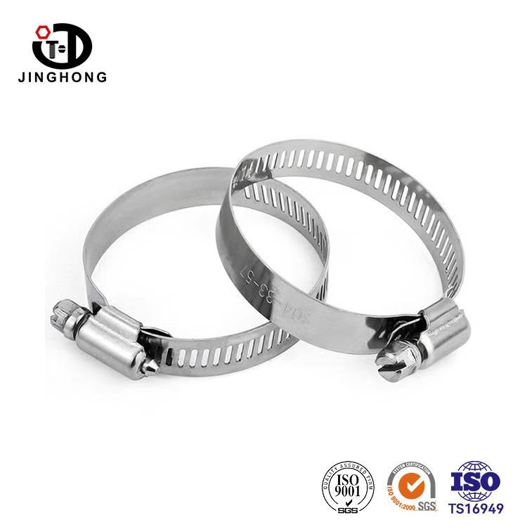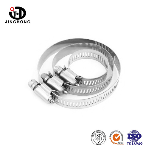 O processo de produção de grampos inclui corte, crimpagem, formação e aperto peças da mãe. Essas etapas requerem operações delicadas e controle rigoroso da qualidade para garantir a qualidade e o desempenho do grampo da mangueira. A Jinghong Factory possui equipamentos de fabricação avançados e processo de fabricação de precisão, o que pode garantir a precisão dimensional e a estabilidade da qualidade do grampo, para fornecer desempenho confiável.