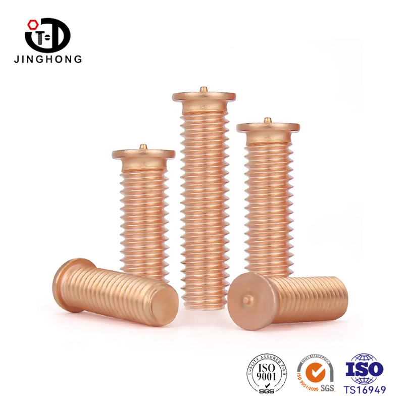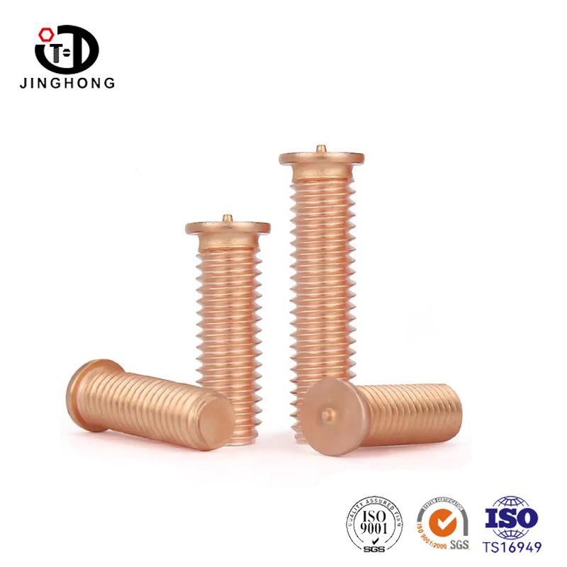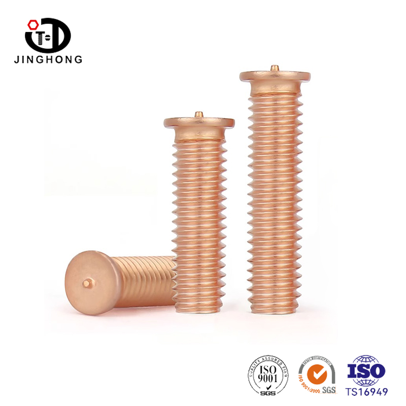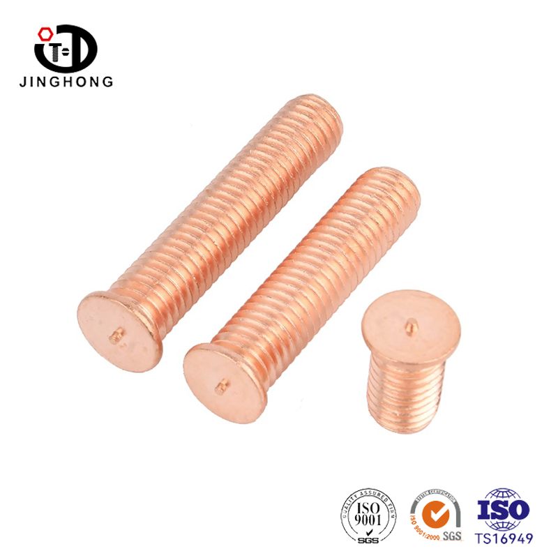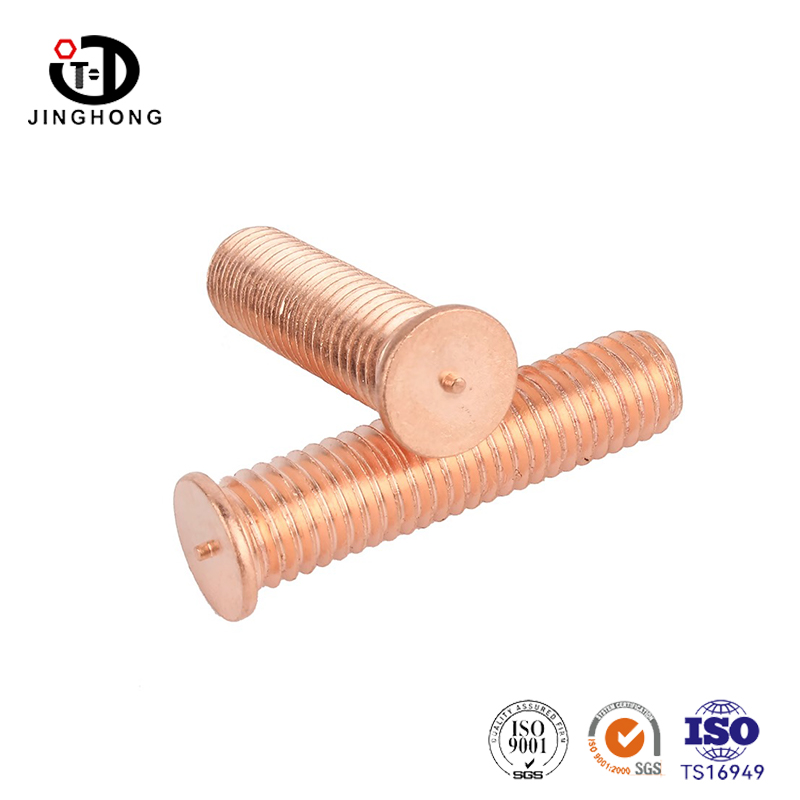 Os recursos dos parafusos de soldagem banhados a cobre são o design de cabeça plana e a tecnologia de soldagem que prende as peças com segurança enquanto conduzem eletricidade. Esses parafusos fornecem montagem de descarga e conexões fortes, tornando -as ideais para aplicações que exigem fixação segura e condutividade elétrica, como aterramento elétrico e instalação da placa de circuito.