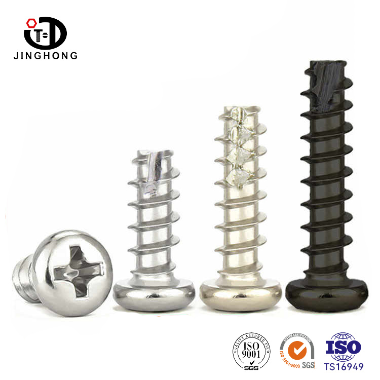 Os parafusos de corte da rosca da cabeça da panela são os parafusos auto -tocando com um design de cabeça da cabeça da ranhura cruzada e um tratamento de corte de cauda. O design desse parafuso permite que ele seja inserido diretamente no material sem a necessidade de pré -rosqueamento durante a instalação, formando uma conexão segura. O design da cabeça do disco da ranhura cruzada permite que os parafusos sejam apertados usando uma chave de fenda cruzada, tornando -o conveniente e rápido.