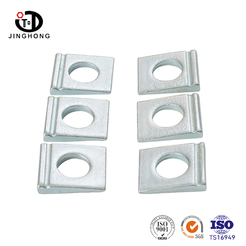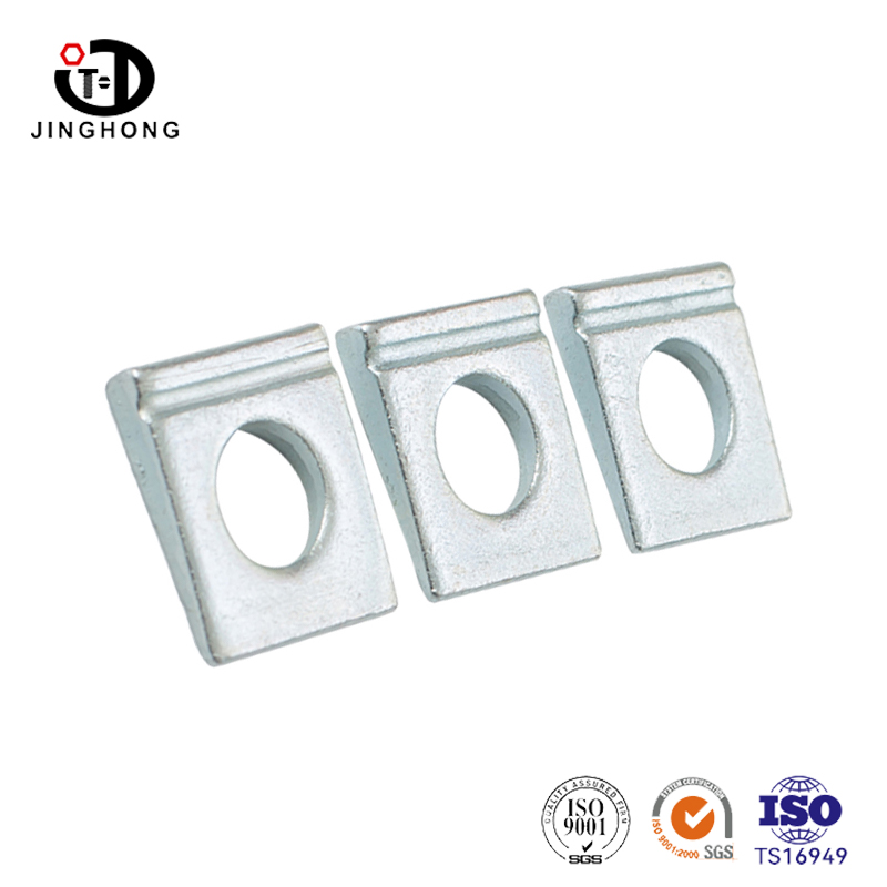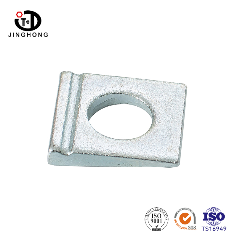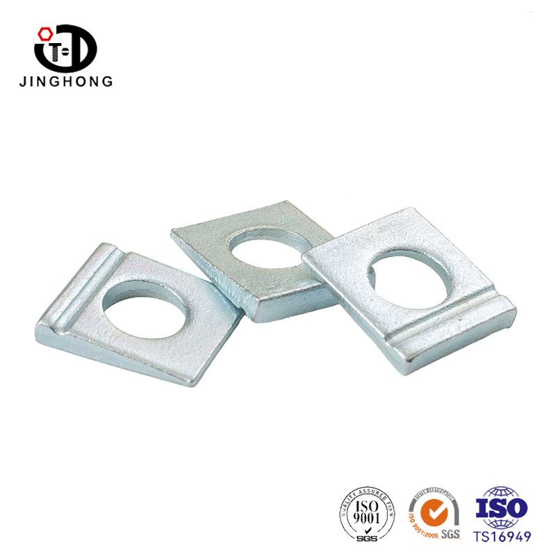 Aragueira de chanfro quadrado de gotas únicas-forjada a partir de aço de alta qualidade e acabado com um revestimento de zinco, esta lavadora apresenta uma superfície uniforme e cinza prateada que fornece melhor resistência à corrosão. Seu quadrado chanfraria-se para coplanar com superfícies angulares e faz contato total com as porcas ou cabeças dos parafusos.