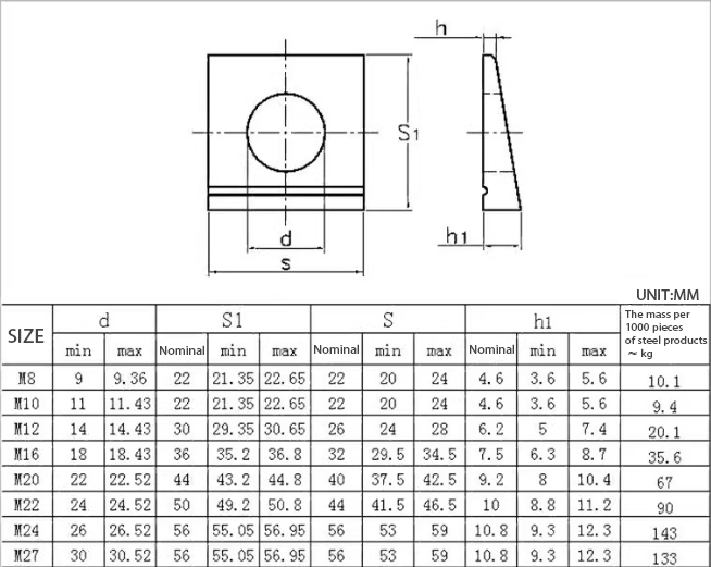 | Nome | Lavadora chanfrada quadrada de ranhura única |
