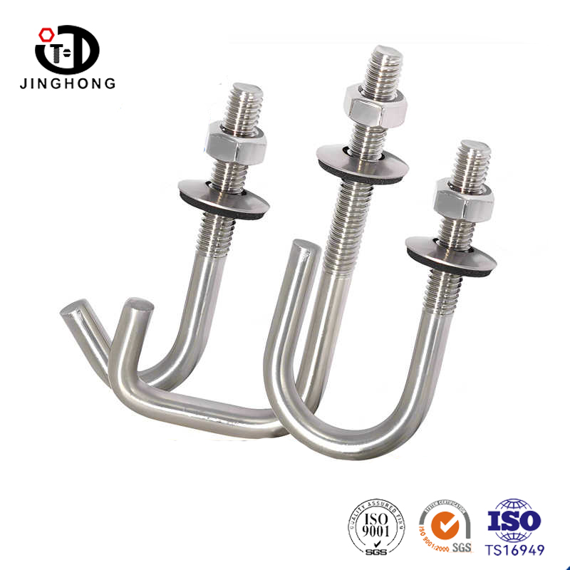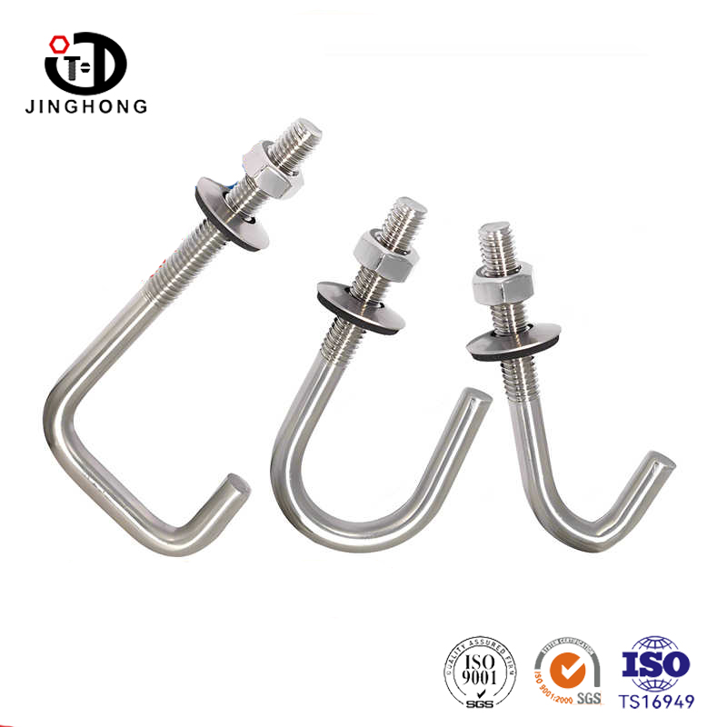 A estrutura do parafuso J de aço inoxidável normalmente consiste em um corpo principal com uma estrutura de gancho ou cotovelo e um eixo roscado. Esse projeto permite que o parafuso agarre firmemente a borda do ladrilho, mantendo um certo grau de adaptabilidade de deslocamento, mesmo na presença de grandes diferenças de temperatura e expansão e contração térmica, garantindo uma conexão estável entre o ladrilho e o teto. O projeto do eixo rosqueado permite que o parafuso penetre profundamente na camada fixa, aumentando ainda mais a estabilidade da conexão.