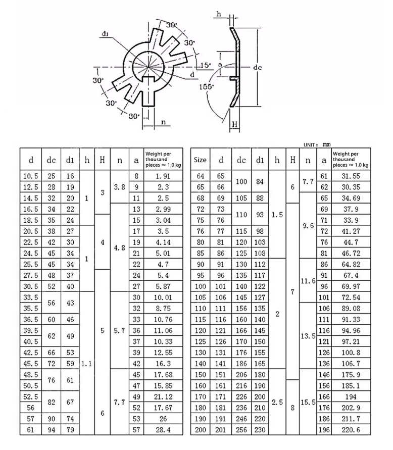 A lavadora de retenção de aço inoxidável para nozes redondas é um acessório de fixação, que é usado especificamente para impedir que as nozes afrouxem. A arruela de retenção de aço inoxidável para nozes redondas é altamente resistente à corrosão e tem resistência muito alta. A borda externa serrilhada da arruela de retenção de aço inoxidável para nozes redondas corta a superfície à qual a montagem é conectada e, juntamente com a porca redonda, impede o afrouxamento devido a vibração ou outras forças.