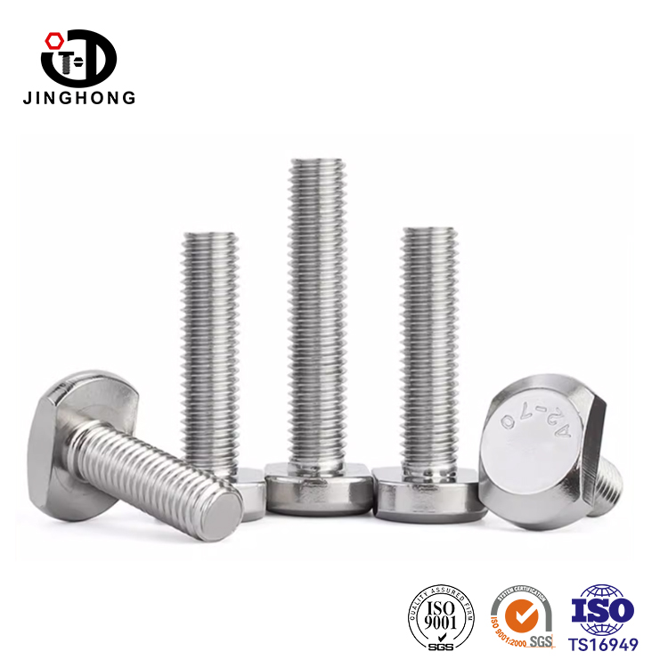 O parafuso T de Jinghong pode ser colocado diretamente no slot do perfil de alumínio, durante o processo de instalação, o parafuso T pode ser posicionado e bloqueado automaticamente, frequentemente usado com porcas de flange, é um conector de correspondência padrão ao instalar peças de canto, pode ser selecionado de acordo com a largura do slot de perfil e diferentes séries de perfis. T parafuso é um parafuso de ancoragem móvel.